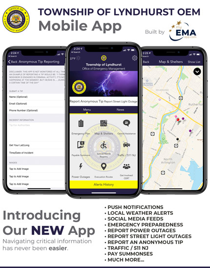 The Lyndhurst OEM mobile app is designed to keep Lyndhurst citizens, businesses, and visitors prepared for and alerted to emergencies. The new mobile app is available for download free of charge from the iPhone and Google Play (Android) app stores.
